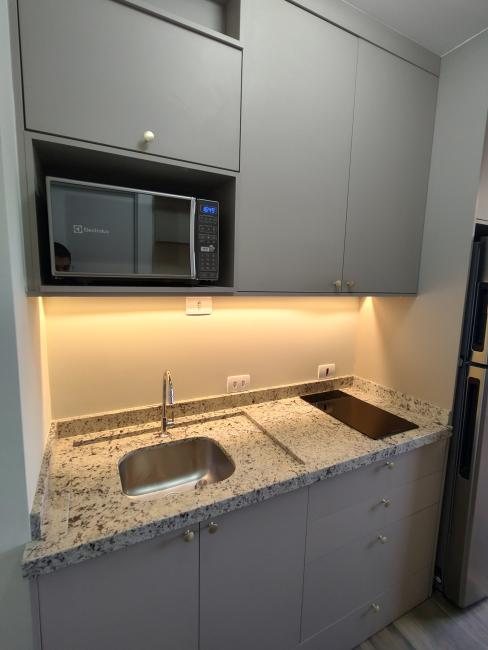 Studio mobiliado com 1 vaga de garagem, três quadras do Shopping Palladium e Supermercado Muffato! Novo Mundo, Curitiba Não tem cama. Mobiliado com armários planejados, geladeira, microondas, cooktop de inducão de duas bocas, prateleiras para temperos, mesa planejada. Moderno ventilador de teto embutido na luminária.Com 1 vaga de garagem coberta, livre, privativa. Iluminação pronta, com luminárias diferenciadas, fios de led ao redor de algumas mobílias, a luminária do quarto ela tem ventilador embutido, acionado por controle, ótimo para os dias mais quentes. Localização privilegiada no Novo Mundo. Três quadras do Shopping Palladium e Supermercado Muffato Portão, próximo a frutaria, loja pet, farmácia, universidades e hospitais.O imóvel será entregue como nas fotos, pronto para você se mudar, studio com 17m2 de área privativa, praticidade para você morar. Com o One House, more quase ao lado do shopping Palladium e da av. república argentina. Desfrute de uma ampla área de lazer com:Lavanderia by OMO, academia, espaço festas, piscina, coworking, lounge externo, Solário, Sala de Jogos, com elevadores. Rua Ildefonso Stockler de França, 260 - Novo Mundo, Curitiba. Banheiro com box de vidro, chuveiro com aquecimento a gás, espelho e armário planejado. Valor de Locação: Primeiro mês Aluguel Bruto R$ 2437,50 + taxas mensaisSegundo mês em diante aluguel líquido R$ 1950 + taxas mensais Taxas Mensais:Seguro Fiança: R$ 250 aprox.Condomínio: R$ 412 aprox. IPTU: R$ 50 aprox.Tarifa bancária: R$ 8 Seguro incêndio: R$ 20 aprox.Taxas mensais ficam em torno de R$ 740 Entre em contato conosco e agende já sua visita.