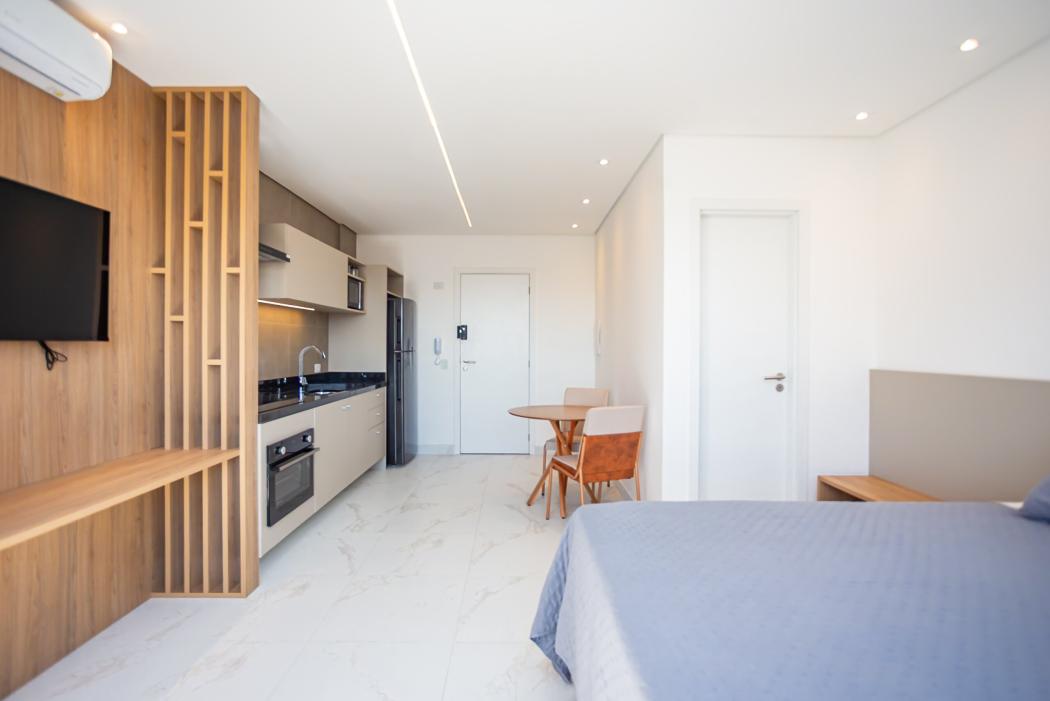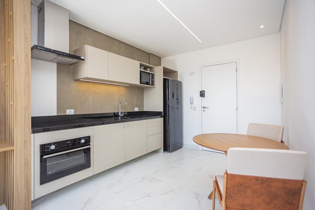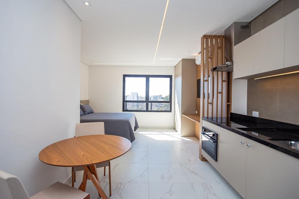 Studio 30m² – Eixo 795 | Cristo Rei * Localizado no 8º andar, ensolarado, com vista para a cidade * Entregue em setembro/24 pela Blue Empreendimentos * Totalmente mobiliado com móveis de alto padrão da Perfacto Batel * Inclui cama box, mesa, cadeiras, painel com TV, roupeiro, forro de gesso com iluminação. * Eletrodomésticos inox: geladeira, forno, micro-ondas, coifa + ar-condicionado instalado * Banheiro com box em vidro, armário e acessórios completosCondomínio com lazer completo: * Rooftop com 2 salões de festas integráveis, churrasqueira e espaço gourmet * Lavanderia comunitária * Coworking moderno com sala de reuniões e área externa de descompressão * Hall aconchegante, bicicletário e lojas externas - uma das lojas com LavanderiaLocalização estratégica – Av. São José, 795 (Cristo Rei): * Próximo aos hospitais Marcelino Champagnat e Cajuru * Ao lado de universidades, supermercados, farmácias e restaurantes * Excelente para estudantes, profissionais da saúde, idosos e investidores * Aceita Airbnb